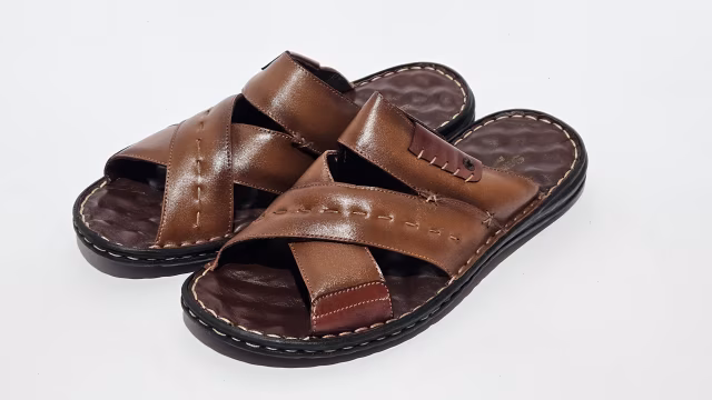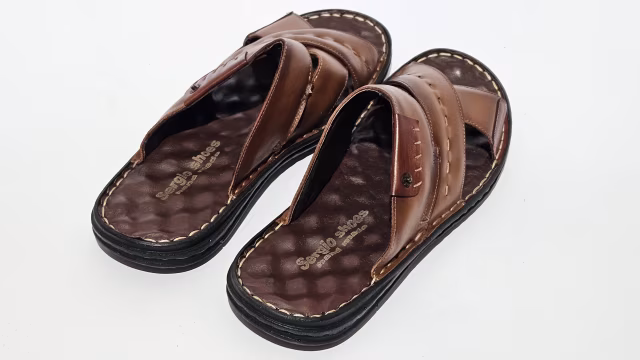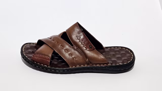 Muška papuča od prirodne kože, sa fleksibilnim đonom, i gazištem od sunđer gume.